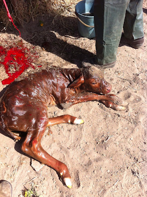 1. Fico comovida também, Susana, porque tenho aquele dia mágico muito presente. Nesta herdade só estava o vaqueiro, mas na segunda a que fomos a vaca estava muito bem tratada, era mansa e tinha um chocalho ao pescoço. Toda a família assistiu ao parto, desde os avós aos netos. O bezerro era muito grande; esse lembro-me que era um macho porque o vaqueiro disse, "esta marota já é a segunda vez seguida que pare um macho". A avó tinha ao colo um neto de três anos, que assistiu a tudo muito sério. A vida no campo é assim. A vaca começou a cuidar imediatamente do bezerro. Foi muito bonito.