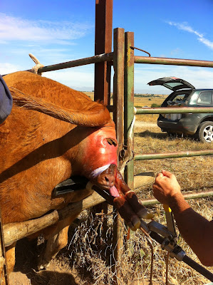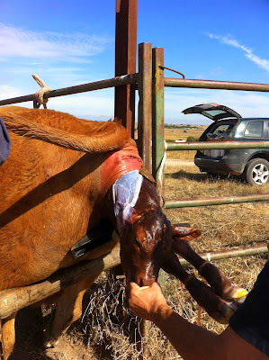 1. São partos distócicos, que obrigam à intervenção do veterinário. Neste caso a apresentação do feto é normal (de cabeça), o que acontece é que, ou flectem as patas, ou o pescoço, ou são muito grandes, o que pode implicar cesariana. O papel do veterinário é enfiar o braço até encontrar o feto e endireitar as mãos, ou guiar a cabeça até a introduzir no canal do parto. Geralmente a vaca já está cansada e pouco ajuda com contracções, por isso se usam cordas nas patas e até uma espécie de alavanca, para conseguir traccionar o feto.